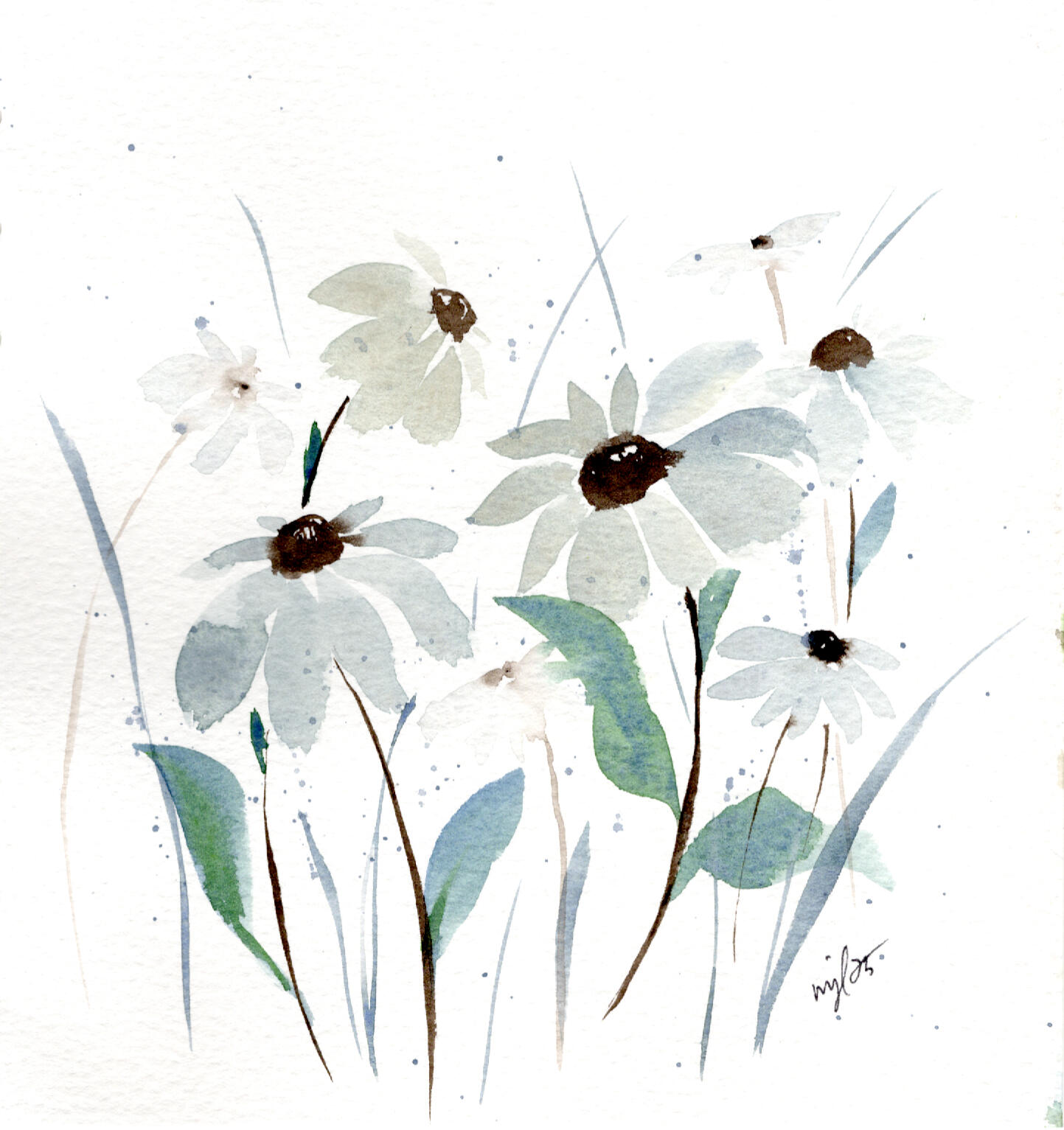 Watercolor 7 x 7.5 "Tonal Conflowers" $52